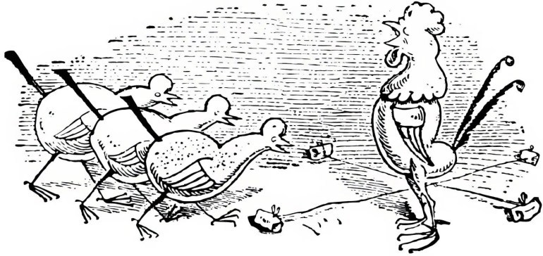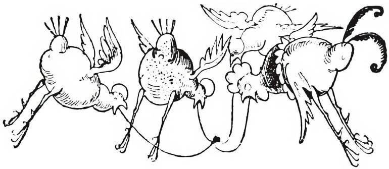 Hahn un Höhner fleigt in't Gräß.